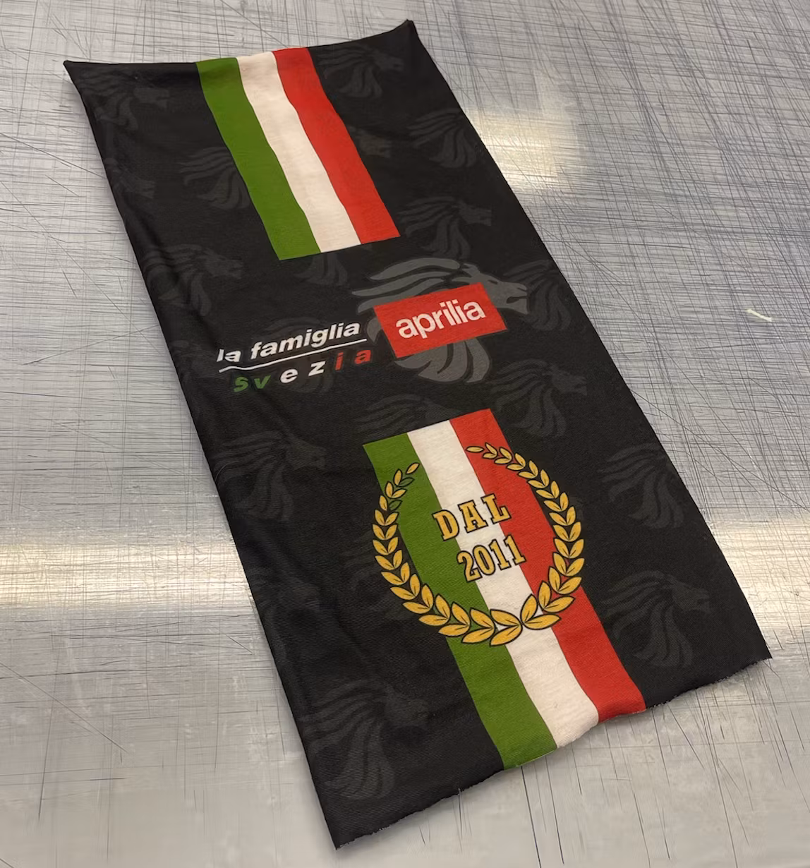 Nästa år fyller klubben La Famiglia Aprilia Svezia 15 år, det vill vi fira med denna jubileums-designade buff.
